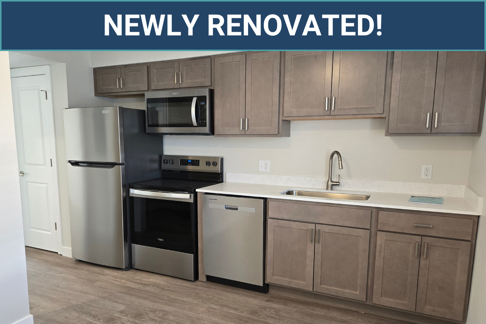 This spacious upstairs 2-bedroom, 1.5-bath apartment is newly remodeled and includes new flooring, cabinets, appliances, countertops, and fixtures. The unit features plenty of natural light, generous living space, a dishwasher, a microwave, and a newly installed washer and dryer conveniently located off the kitchen.