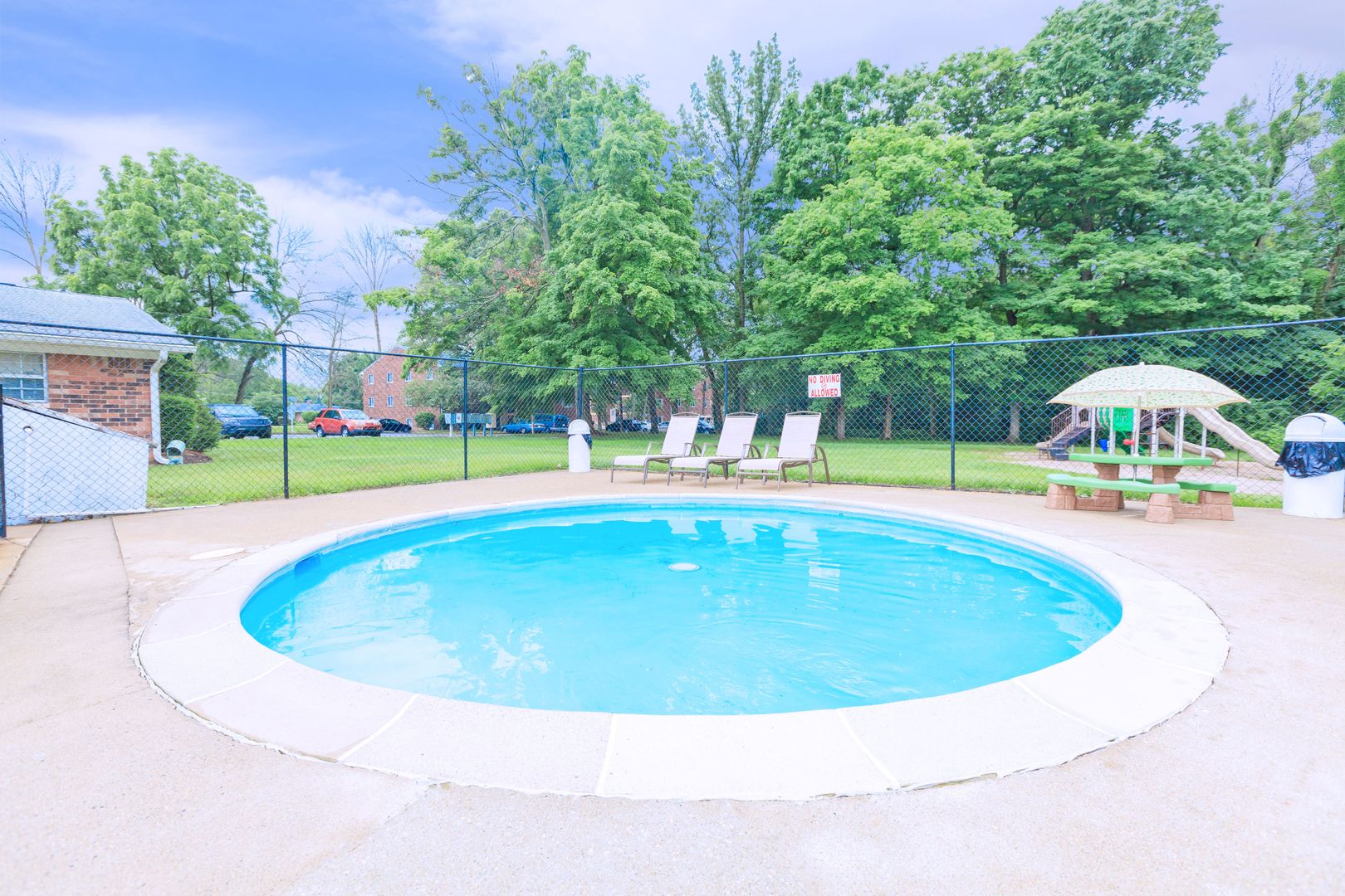 The spacious two-bedroom apartment includes an eat-in kitchen with a stove, dishwasher, and fridge. Residents can enjoy our pool with sundeck, clubhouse, picnic area with grills, playground, and bark park. On-site parking is available.