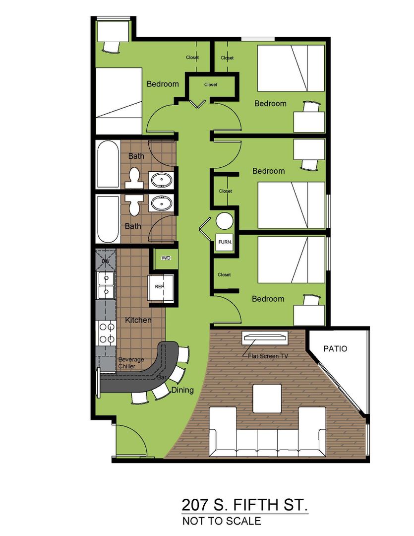 INCREDIBLE LOCATION! 207 Fifth features recently updated 4-bedroom, 2-bathroom units in a great neighborhood! Close to class, County Market, restaurants in campus town, and more! Enjoy in-unit laundry for your convenience. More features of these apartments include granite countertops in the kitchen, a flat-screen TV, and a dishwasher!